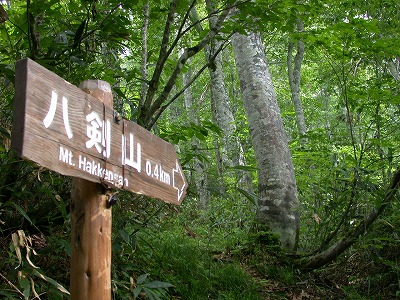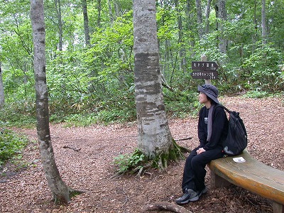 ブナ林の歩道が整備されているカヤノ平。 ←ここは、いろんなコースの合流点。 四方八方がブナ。 とてもロケーションが良くて、 ゆっくりと過ごすことが出来ました。 (makko) |