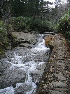 アライタ沢。水の量が7月より増え 澄んでいたような気が… 山道に沿った水路の水は枯れていました。 止めてあるのかな?? |