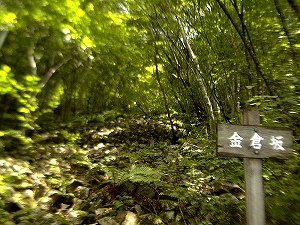 | 途中にある金倉坂は虫倉山の黄金伝説にまつわる場所らしい。岩・石がごろごろとしていて、さながら雪崩跡のよう。 | ![]() |