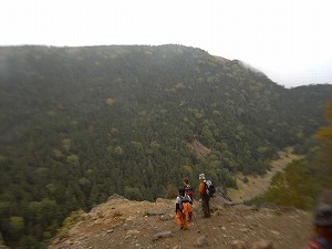 | 中山峠付近にこんな開けた場所が。 崖になっているが 眺めは最高! ところどころ紅葉した森が眼下に広がる。 すいこまれそうな、 景色。 |