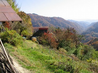 | 406号線ドライブは最高だった。 織り成す山々の紅葉。赤・茶・黄色・オレンジ。 蕎麦粒山の登山道入り口はその界隈で一軒だけという {清水さん}のお宅の敷地内ということで、そこへとのびる道を探す。 しかし分からない。 少し手前の集落に戻ると、第一村人発見! 「蕎麦粒山へはどこから登るんですか?」と尋ねた所、 1キロ程先に左へ曲がる道があるから行くと、下のほうに1軒だけ 家があるから・・・と親切に教えてくれた。 1キロ先の道・・・確か 「現場入口」 という看板はあったが・・・ 現場・・・? ここからミステリーが始まった。 現場入口から細い山道・・・しかしコンクリートの道ではある・・・を つめて行くと、山の下へと伸びる道を発見し、車から降りてのぞいて みる。下方に3件ほどの民家が! こんな所に? だけれど1軒だけとも聞いたし、近くに蕎麦粒山らしい山も見えず、 もうちょっと先に進んでみた。 ・・・と、1匹の犬が木につながれている・・・ 飼い主はいづこ・・・? 気にはなったが先へ進む。道はついに砂利道に。 ・・・するとついに! {現場}に到着。何かの作業所であった。 やはりさっきの民家か…とUターンをする。 先ほどの犬が気になって、車を止めて見てみると 小道がのびており、畑で作業中のご夫婦がいらした! この方が清水さんであった。 「蕎麦粒山へはどうやって登るんですか?」と尋ねた所、 「うちの納屋と畑があって、そこの横に道があって・・・ いやぁ、分かりにくいから一緒に行ってやるわ」 と作業の手を中断して下さった。おまけに 「大根が採れすぎてしょうがねぇから、おめぇた持ってけや」と 採れたての大根を10本ほど分けてくださる! ありがたい! 先ほどの民家は、やはり清水さんご夫婦のお家で、春〜秋の間は そこでタバコなどの作物を栽培して生活し、冬には小川村高府の家へ降りると言う。 |