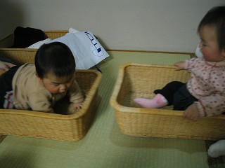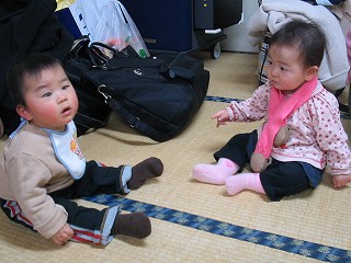 | この温泉宿にお世話になりました。 | ひろちゃん9ヶ月 & ももちゃん11ヶ月 かわいい〜〜!! | ひろちゃん、お食事タイム。離乳食もおいしそう。 |