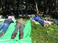 ブルーシートの上で、皆、花よりだんご状態である。