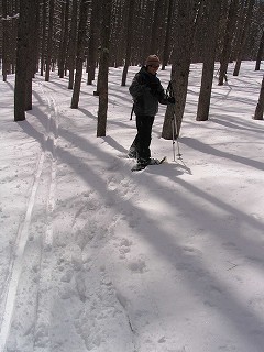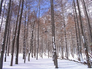 | 影がくっきり (J) | 落葉松林がとても綺麗。 | 動物の足跡? (ボリさん) |