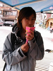 | 何を指さしているのでしょう?鹿島槍がよく見える。 | 下山後はクレープ♪ |