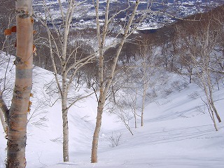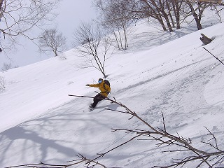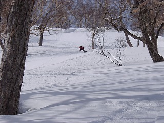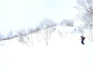 このあと沢つたいにゲレンデへ。 地形が面白い。 |