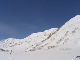 小蓮華山を見上げる。 あと少し・・・と思われたが、 ガスとタイムリミットにより、 そこからエントリーすることとなる。 |