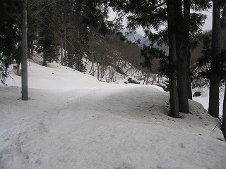 最後は猿倉〜二股へ続く林道へ。 五時間弱のハイクと ガスでの停滞。 二股到着17:30。 |