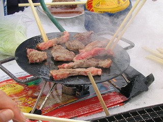 焼く焼く。 食べる食べる。 飲む飲む。 おしまい。 |