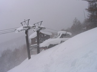 11:40 リフトトップ到着。 風が強かった。 先行の3人パーティが休憩していました。 みんなGentemだー(すごい) この3人の方は、第六リフトのバーンを 気持ち良さそうに滑って行きました。 |