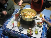 キムチ鍋をつつく。ピリッとあたたかい・・・