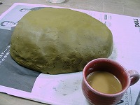 ![]() 6キロの土の塊! 練るのに1時間 のばすのに1時間 |
