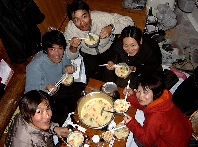 飢えたメンバーの箸はいつになっても止まらない。しあげにご飯を入れて雑炊に。