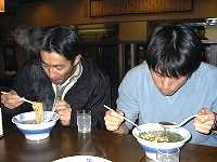 (右)無心に食べる二人 (左)野菜しょうゆラーメン 700円 うまい!