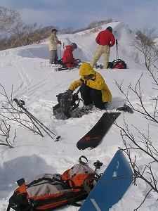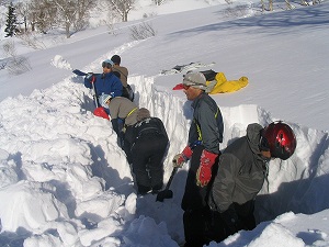 前日にプチ雪崩講習会・机上講習を行い、翌日フィールドに出ました。