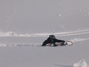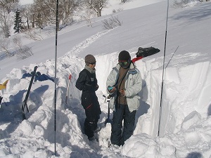 | 巨大ピット? 全員で雪質をチェックしました。 |