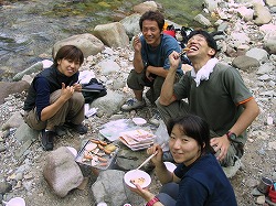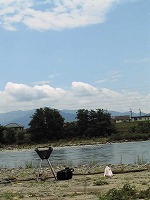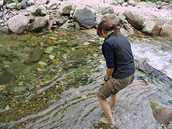![]() 堰を作って水を止め、遊ぶ大人たち 平均年齢○○歳 |