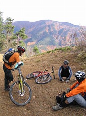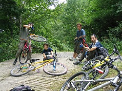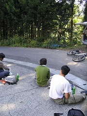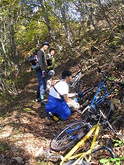 ![]() 急な林道をへいこら登って 休憩中〜 歩くよりしんどい!? |