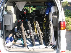 | リアタイヤつけたまま4台余裕で積めるとは・・・ | これが定価★十万円・トシさんのバイク! | のんびり登り。 (Fuji) |