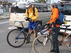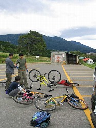 | 某駐車場で準備。 西田さんのタイヤは29インチだって! |