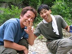 | 今回はラクラク、軽トラに乗って♪ | 最後は登ります。 (たけさん&J) |