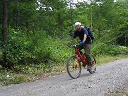 | 登りは始めは舗装路。 あとは砂利のダブルトラック。↑余裕!?(namy) |
