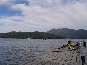 西回り。 桟橋のあるところで少し休憩。バナナを食べる(笑)