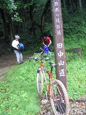 旧碓氷峠からしばらくは広めの道。石や溝をゴンゴン乗り越えて、たのし〜〜