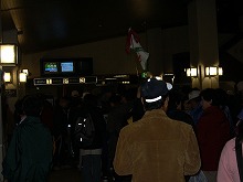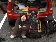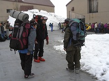 到着した関東組と合流。 ←山篭り組3人の巨大な荷物。27日〜1日までの食料などがつまっている。 この後、宿である「雷鳥荘」へみんなで向かう。 |