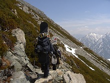 時々晴れるもののやっぱりガス気味。 でも雨が降らなくて良かった。 滑りとハイクをおりまぜながら宿へ。 雷鳥に出会う、いいシュートに出会う、なかなかに快適。 この後、荷物を宿の部屋へ起いて身軽になり、他のメンバーはキッカーを作りに出かけていった。私は・・・風邪でダウン・・・夕飯時まで寝ていました。 キッカーおおいに楽しんだようです。 |